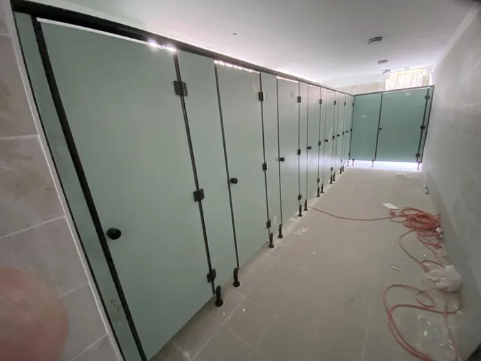 תאי שירותים ומחיצות מטרספה (H.P.L) בצבע ירוק בהיר