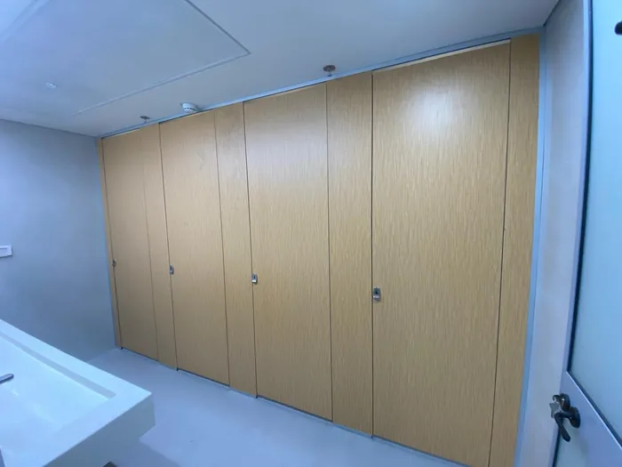 תאי שירותים ומחיצות מטרספה (H.P.L) ריצפה-תקרה בצבע אלון סולרי